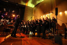 Nach den Grußworten des Schirmherrn, Herr MDB Andreas Steier zu Beginn des zweiten Teils überraschte der Frauenchor „belcanto“ unter der Leitung von Herrn Edwin Fell mit dem gewagten Titel „Engel“ von Rammstein, begleitet von „schwarzen Engeln“, die dazu eine Choreographie vorbereitet hatten. Weitere Chorwerke in verschiedenen Besetzungen unter Mitwirkung des Schulchores unter der Leitung von Frau Kathrin Notte-Zeck rundeten das Programm ab. Zum Schlusslied versammelten sich alle Akteure des Abends noch einmal auf der Hauptbühne und den zwei zusätzlich eingerichteten Seitenbühnen. Mit dem Musikwerk „The Call of Christmas“ basierend auf dem Choralwerk „Adeste Fidelis“ verabschiedeten sich die insgesamt rd. 200 Bläser-, Sänger-, Streicher- und Darsteller/Innen von dem Begeisterten Publikum.